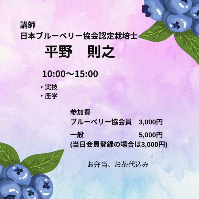4.費用:・日本ブルーベリー協会員:3,000円